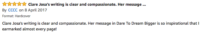 If you're already a reader of Dare To Dream Bigger, then thank you! And please make sure you register for the readers' club, using the link in your book, by 17th May to make sure you qualify for these bonuses.