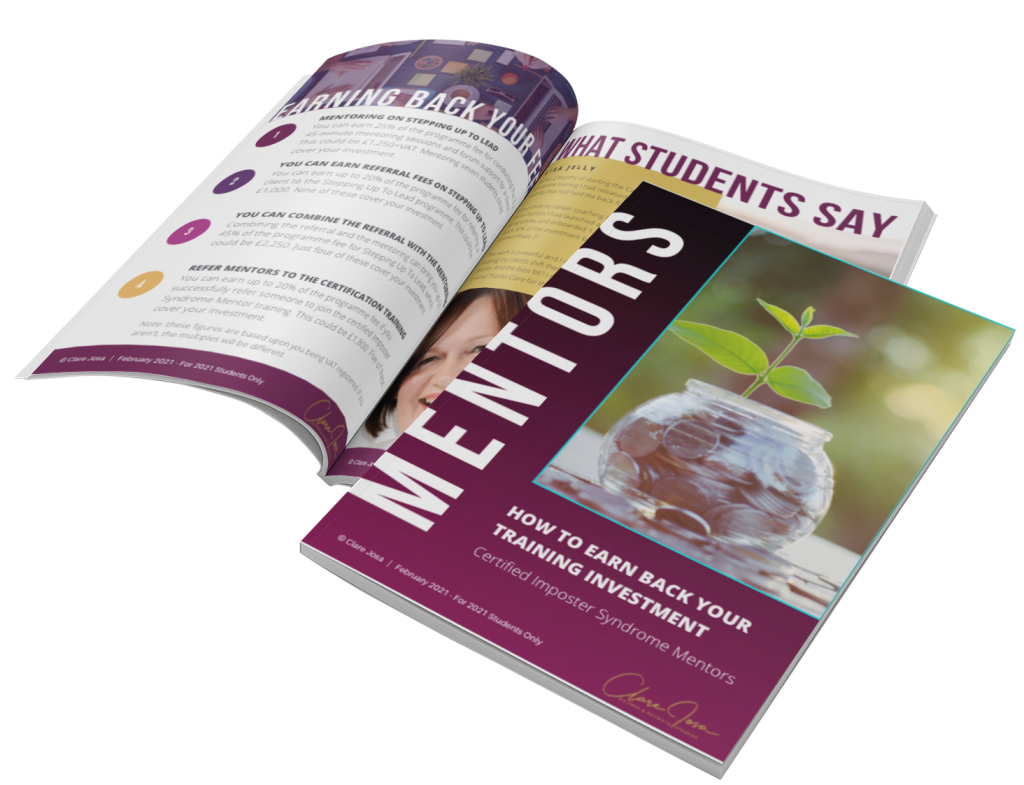 At the end of the masterclass, I talk briefly (it's just a minute, not a half-hour sales pitch!) about my Certified Imposter Syndrome Master Coach programme.