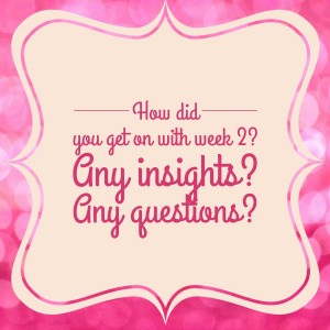 Welcome to week two! How did you get on last week? Do you have any insights from week one? Or any questions? I’d LOVE to see you over at the forum!