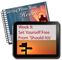 Ok, so we’re ready! It’s time in week 9 to set yourself free from ‘should-itis’ – the modern epidemnic. And you’ll be amazed at how much easier that makes it to live from your heart, rather than your head. In week 9 we’ll cover: