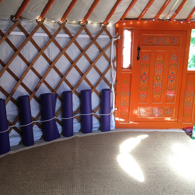My yoga yurt is in a field, about 100m from our break-out room, so please bring shoes that are happy over grass, rather than your Manolos ;-)