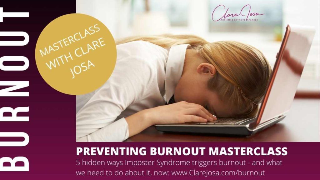 My research shows that there's a direct correlation between Imposter Syndrome and burnout, in part due to our tendency to 'push on through' and set ourselves higher performance standards, if we're secretly running the fear of being 'found out' as not good enough. You can find out more about the link between lockdown, Imposter Syndrome and burnout here.