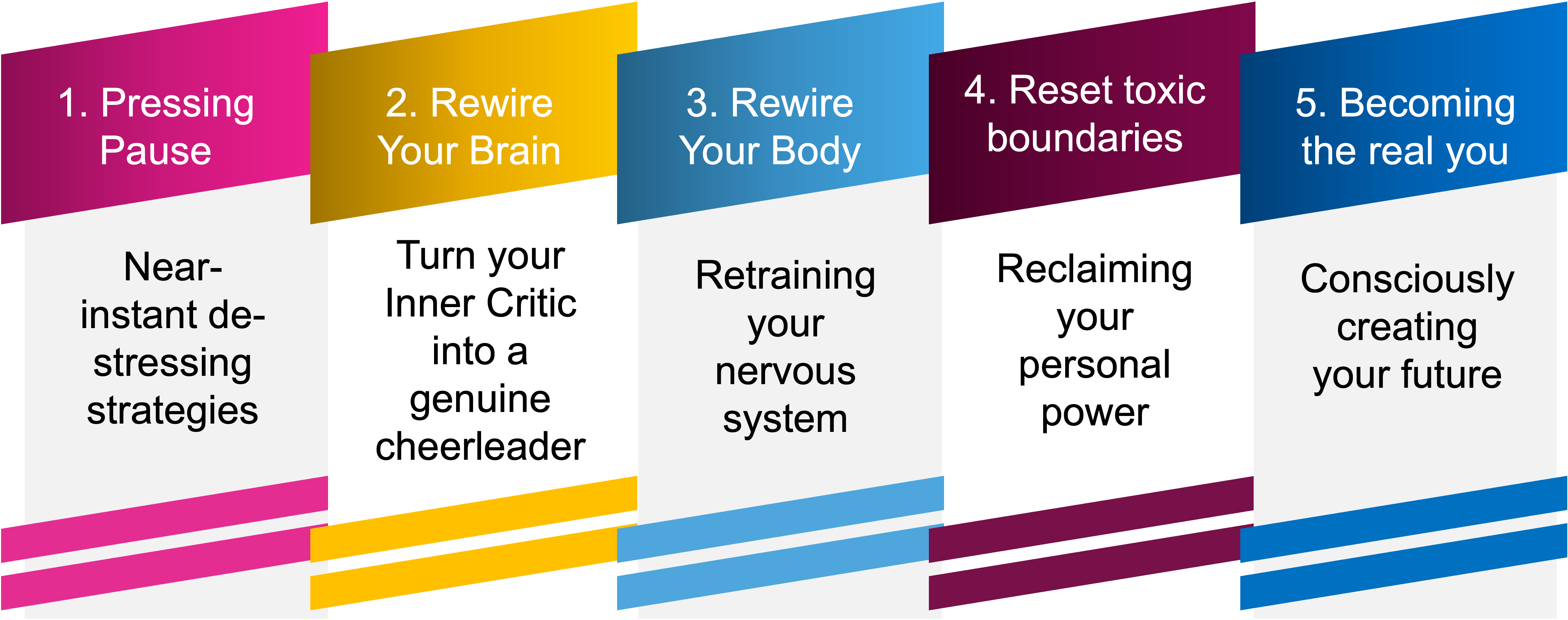 My Natural Resilience Method® is a research-backed, proven five-step process that can turn Imposter Syndrome and burnout around, in just a few weeks, by supporting people with creating change in their personal habits and environment.