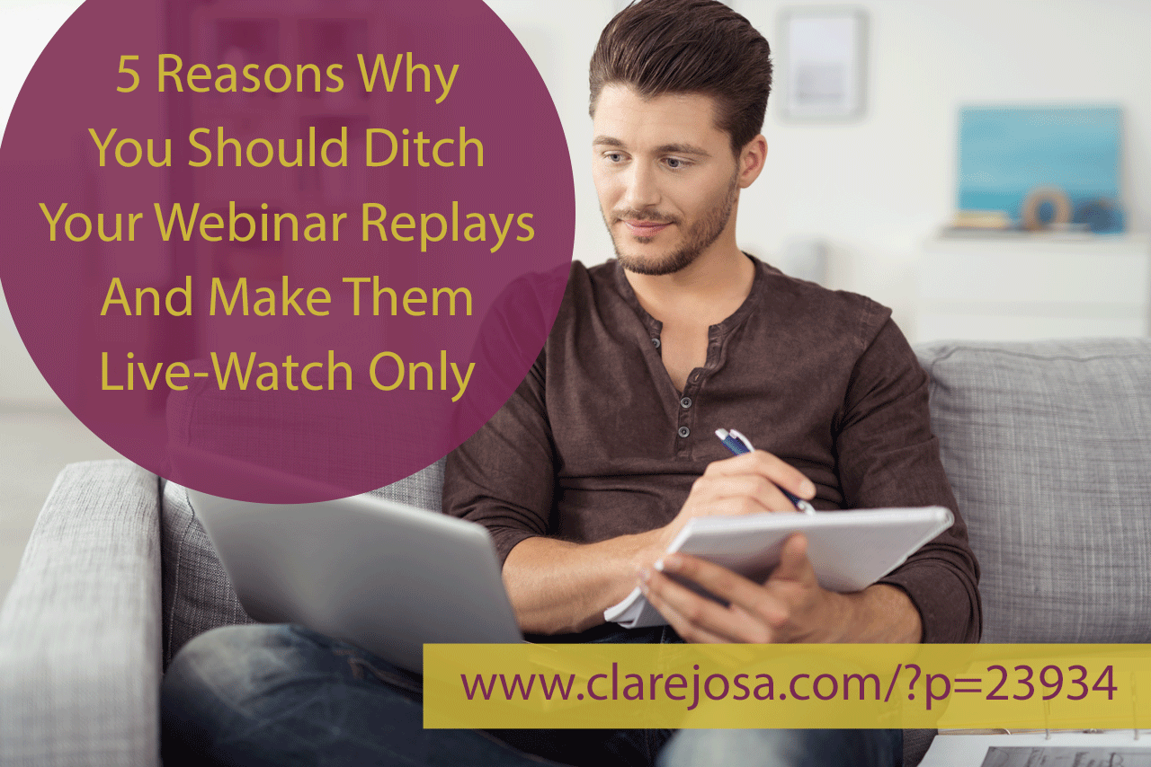 I’d love to shortcut your learning curve and share some insider secrets, to help you make the most of your live sessions. And today we’re covering why I’m moving my free webinars to be ‘live only’, as of next month. [Read more…] about 5 Reasons Why You Should Ditch Your Webinar Replays And Make Them Live-Watch Only
