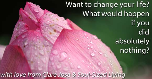 But the bottom line is that you have the power to choose to ‘do’ nothing; simply to allow yourself to melt into ‘being’ who it is you want to be – right here in this moment. Yes, right now. No, not ‘then’ or ‘when’ or ‘sometime’.