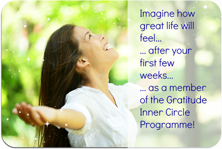 That’s one of the reasons why it is so important to me that I only share the depth of techniques we’ll be using in the Gratitude Inner Circle in a mentoring environment – and it’s why you’ll never find them just hanging around in a book. This stuff really works – and I want to make it as easy as possible for you – and that’s why it’s really important that we get to connect, rather than me leaving you on your own. We have the private online community, where you can share your experiences (both great and otherwise!) and get moral support, plus the fortnightly Q&As, where you can get answers to your questions.