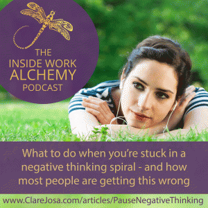 Do you ever get stuck in a spiral of negative thinking? Wish you could pause negative thinking? Want to know how to set yourself free? And how to avoid the super-common mistake that most people are making, that keeps them stuck in that downward spiral? Today’s Inside Work Alchemy podcast spills the beans on what is really going on, and what you should be doing instead.