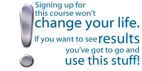 The main thing is that you ‘get’ that this course won’t work by ‘osmosis’: if you want to see results, you’ve got to go use this stuff!